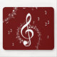 G Clef entre as notas de música em um vermelho profundo. O fundo vermelho escuro faz as notas brancas brilhantes pop. Design de música branca e marrom,