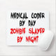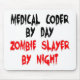 Este design de texto engraçado apresenta a frase "Medicina Coder by Day Zombie Slayer by Night" e é perfeito para qualquer médico que ama zombies.