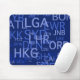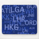 Caixa azul coberta com os códigos da três-letra para aeroportos de todo o mundo