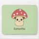 Um mouse verde com uma ilustração de um cogumelo fofo no estilo cartoon texto personalizável abaixo! Adicione um toque engraçado no seu trabalho ou faça um belo presente a uma criança ou a um micologista!