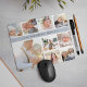 O painel do mouse Chic Photo Colage exibe nove fotos favoritas em formato quadrado, com seu nome de família, nome comercial ou escolha de personalização exibidos em uma banda fina de cinza de nevoeiro.