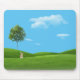Rolando colinas verdes com coelho e árvore de solteiro verde