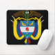 Casaco de armas da Colômbia. A casaco de armas da Colômbia contém um escudo com numerosos símbolos. No topo do escudo está um Condor Andino segurando uma coroa de azeitona e o condor simbolizando a liberdade. O lema nacional, Libertad y Orden (Espanhol para a Liberdade e a Ordem), encontra-se num pergaminho entre o pássaro e o escudo, a preto, sobre fundo ouro. O condor é representado virado para a frente com suas asas estendidas e olhando para a direita.