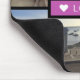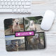 Design moderno com 4 fotos em uma grade com modelo de texto central em um mouse pad de caixa rosa.