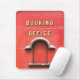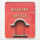 Um design fotográfico da frente de um antigo escritório de reserva de estação ferroviária, onde você poderia comprar seus ingressos de viagem.