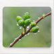 Extreme close de botões verdes de árvores com gotas de chuva