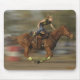 Um cavaleiro obtem o ar sério no sprint curto do terceiro tambor ao meta.