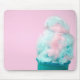Doces de algodão em cone de sorvete de turquesa isolados em rosa.