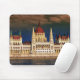 Por do sol colorido na construção húngara do parlamento em Budapest, Hungria