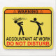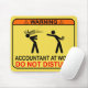 Mousepad engraçado com o texto, "ADVERTÊNCIA. CONTADOR NO TRABALHO - NÃO PERTURBE"