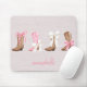 Esta "Coquette Cowgirl" personalizada plataforma de rato é a mistura perfeita de doce e asneira! Com quatro botas de vaquinha adornada com arcos cor-de-rosa e brancos, ele traz uma vibração divertida do Ocidente para qualquer espaço. O fundo esticado, detalhado com um sutil padrão de grãos de madeira, acrescenta uma elegância rústica. Personalizado com um nome numa charmosa fonte rosa, este produto é tão único quanto na moda - um sotaque incontornável para qualquer vibração coqueteira! Todo o texto (exceto gráfico) é totalmente personalizável ou removível.