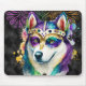MOUSEPAD COR DE ÁGUA CUTA MARDI GRAS SIBERIAN HUSKY CACHORR