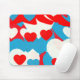 Gráficos cardíacos de estilo retrorativo em vermelho, branco e azul no tapete do mouse.