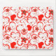 Mousepad Corações vermelhos e flores em branco