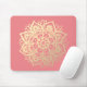 Um bloco de notas com um belo design de flores de mandala, dourado, em fundo rosa-coral. Este chic e elegante mouse pad é perfeito para uma mulher ou menina adolescente que gosta de mandalas florais mínimas e cor rosa.