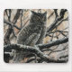 Uma grande coruja Horned no desencapado, ramos do inverno de uma árvore.
