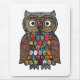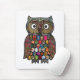 Tapete do rato com uma ilustração bonito da coruja da colagem dos retalhos feita das fotografias individuais das flores, dos animais, das paisagens, do pôr do sol e ainda da vida.