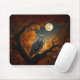 Uma coruja excelente corada em uma árvore no outono sob a luz de uma lua de cheio.