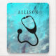 Do mármore médico de turquesa do estetoscópio da enfermeira o tapete do rato feito sob encomenda é um design atraente do divertimento e vem personalizado com nome! Este design foi criado de uma foto pessoal e eu quis compartilhar com você projetando este tapete do rato.