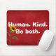 Texto inspirador sobre ser gentil com os humanos com girassol em fundo texturizado de couro vermelho. O texto é editável.