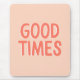 Um mouse tipográfico bonito com a citação do Good Times em um coral rosa alegre e design de pêssego.