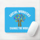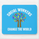 Trabalhadores Sociais Mudam o dom inspirador do Mundo. Uma bela citação motivacional do trabalho social escrita em torno de uma bela árvore das folhas do arco-íris.