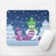 Ilustração vetorial de dois adoráveis bonitos bonecos de desenho animado vestidos com chapéus e lenços de malha. O grande boneco de neve está tricotando um cachecol enorme para o pequeno. O cachecol já está envolto várias vezes no bonitinho bonitinho bonitinho bonitinho.