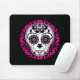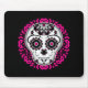 Um bonito crânio de açúcar desenhado à mão em branco, fuchsia, e preto com muitos sotaques elegantes de caleidoscópio.