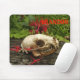 Mousepad Crânio de Raccoon com samambaias e Monarda vermelh