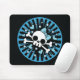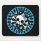 Crânio bonito e bósforos com arco cercado por corações e estrelas em tons de azul.