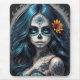Esta imagem vibrante que apresenta um crânio azul de açúcar muito detalhado, inspirado no icônico Dia dos Mortos. O crânio é intricadamente adornado com padrões florais coloridos, espirais e flores, criando um equilíbrio espantoso de ousadia e elegância. Com sua radiante matiz azul, o design simboliza tanto a celebração quanto a memória, fazer-a perfeita para aqueles que apreciam arte cultural vibrante.