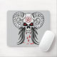 Este crânio malvado tem chifres de carneiros e presas que secam sangue com pentagrama vermelho e olhos brilhantes.