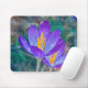 Delicioso croco roxo florescendo em uma manhã de primavera no Morton Arboretum em Lisle, Illinois.
