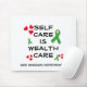 CUIDADOS DE PRÓPRIA SAÚDE Mental É um Rato Cristão de CUIDADOS DE SAÚDE, com texto PERSONALIZÁVEL para homens e mulheres que querem promover a autoassistência e sensibilizar para a saúde mental enquanto constrói seus negócios. O texto diz "CUIDADO PRÓPRIO É CUIDADO DE RIQUEZA" com o "EMPREENDEDOR WISE KINGDOM" que se encontra por baixo, onde pode acrescentar o seu nome ou outro texto. O texto está rodeado por aglomerados cardíacos e fitas verdes que representam a consciência da saúde mental. Este Mousepad, que se autossuficiência, constituiria um presente excelente para os trabalhadores cristãos.