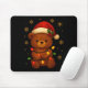 Mousepad Cute Teddy Bear Christmas Tree Lights Santa Hat Fu