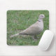 Este lindo bocal mostra uma fotografia adorável de uma bela cinza Collared Dove. O pássaro está parado em uma grama verde.