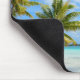 Mousepad com uma palmeira de suspensão em uma praia branca da areia de uma ilha tropical no Oceano Pacífico que pertence ao arquipélago Polinésia francesa de Tahiti.