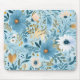 Bonito marfim e design abstrato de prado azul-margarida em um fundo azul macio.