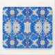 Mouse Pad numa cor damasco baseada numa floral William Morris, melhorada digitalmente e colorida - tons de azul e branco de safira médio a escuro, contra uma cinza de prata clara / fundo de cinza