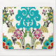Mousepad Damask Floral Patternos Plum Turquoise
