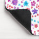 Um bonito Mousepad, com um padrão de flores em roxo, turquesa, rosa e laranja sobre fundo branco, de uma colagem de papel pintada à mão por Judy Adamson. Você pode mudar facilmente a cor do plano de fundo, se desejar, usando o botão Editar.