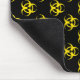 Mousepad preto com um padrão de símbolo de risco biológico repetido no campo de texto amarelo brilhante e editável para fácil personalização com um nome ou mensagem.