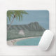 DIAMOND HEAD Mousepad mostrando a visão da cratera vulcânica de Cabeça de Diamante em Oahu, vista da praia em Waikiki, pelo artista em destaque Joel Johnson.