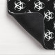 Mousepad preto com um padrão de símbolo de risco biológico repetido e texto em campo de texto branco editável para fácil personalização com seu nome ou mensagem.