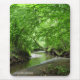 Fotografia de uma floresta verde, árvores e um riacho, impressa em um Mousepad.