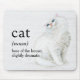 Definição de dicionário para CAT em texto preto sobre fundo de madeira lavada em branco com esboço branco de gato persa