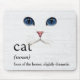 Definição de dicionário para CAT em texto preto sobre fundo de madeira lavada em branco com esboço branco de gato persa