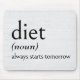 Definição de DIET em texto preto sobre fundo de madeira branqueada. O plano de fundo pode ser alterado.