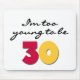 Eu sou demasiado novo ser 30! Se o aniversário de 30 anos pareceu rastejar acima em você, se você recusa obter mais idoso, pelo menos no espírito, ou se você está procurando um grande presente para a pessoa que gira 30 anos velhos que pode ser usado o ano inteiro você amará este design de texto preto, vermelho, e amarelo.