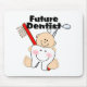 Nosso t-shirt do dentista do futuro caracteriza o bebê o mais bonito que guardara um dente enorme, uma escova de dentes & umas ferramentas dentais. Presente perfeito para o miúdo que tem um dentista para um pai ou uma mamãe! Disponível no bodysuit, nos creepers, nos t-shirt, nas camisolas, nas sacolas & em mais. Grande presente novo do bebê ou presente do chá de fraldas